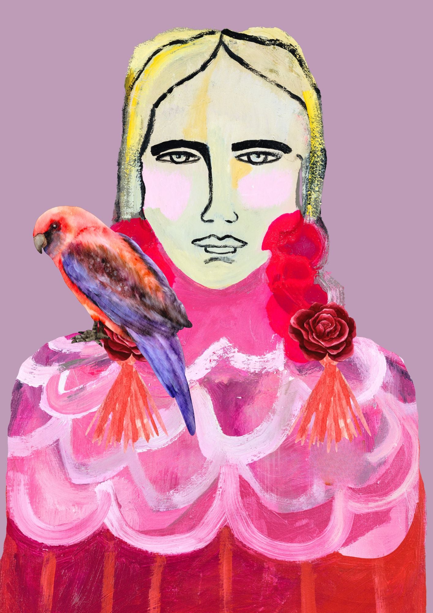 A bird perches on her shoulder, it carries whispers from another world. Her armor is light, adorned with a pink shawl from her great grandmother she wears it with pride.